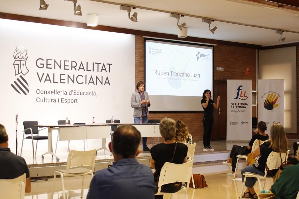 El director general de Política Lingüística i Gestió del Multilingüisme, Rubén Trenzano, ha destacat que l’objectiu és “incentivar l’ensenyament de la llengua de signes tant a persones sordes com a persones oients, no sols per a afavorir la inclusió plena en la societat del col·lectiu de persones sordes, sinó també per a donar a conéixer la seua la cultura i característiques”.