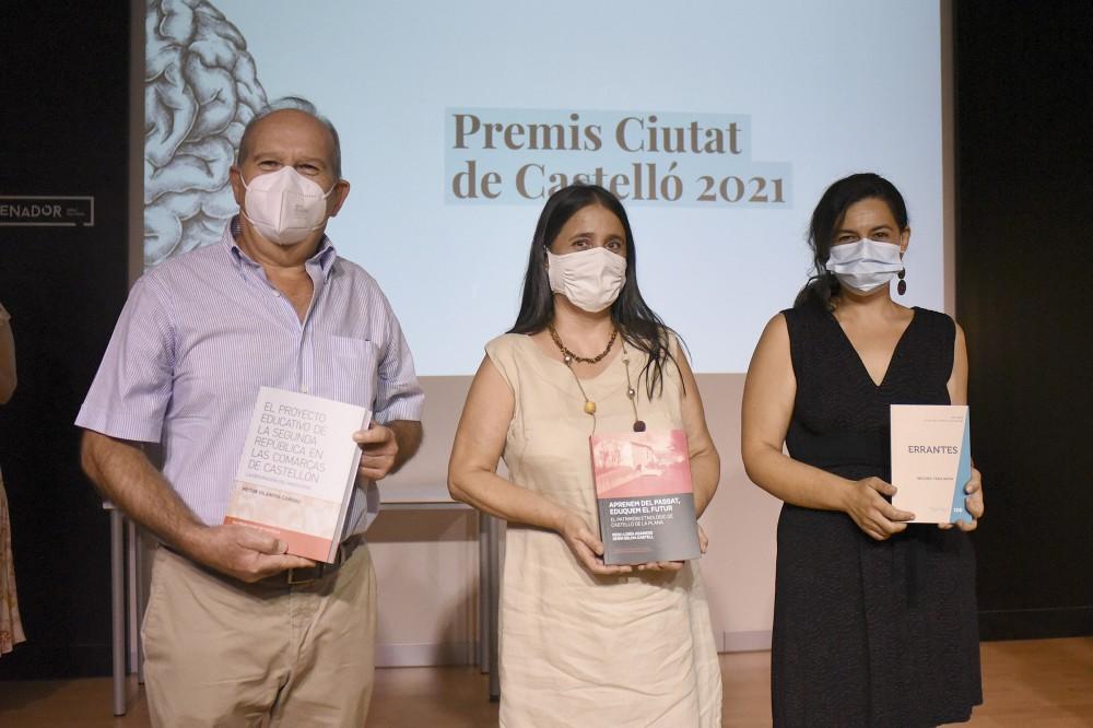 width=Durant l’acte s’han entregat exemplars de les obres premiades a l’edició dels Premis Ciutat Castelló 2020. Així doncs, la Regidoria de Cultura ha editat i publicat l’obra de teatre ‘Errantes’, de Begoña Tena; el Premi Ciutat de Castelló d’Humanitats ‘El proyecto educativo de la Segunda República en las comarcas de Castelló’, 'La  width=depuración del magisterio’, de Víctor Vilanova; i, finalment, el treball d’investigació de Reis Lloria i Sergi Selma, ‘Aprenem del passat, eduquem el futur. el patrimoni etnològic a Castelló’.
