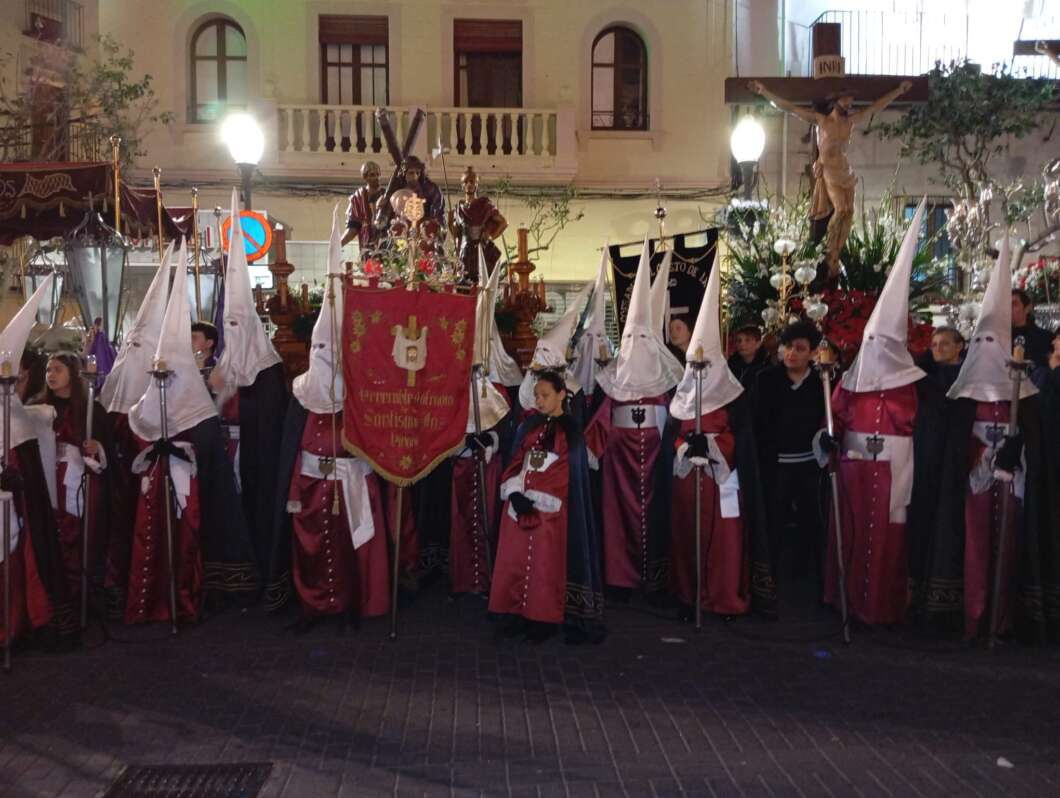Las cofradías que participaron en la procesión de esta noche han sido Oración en el Huerto, San Pedro, Azotes en la Columna, Ecce Homo, Jesús Cautivo y Nuestra Señora de la Merced, Santísima Faz, Santo Sepulcro y Jesús Nazareno, Virgen de los Dolores, Cristo de la Paz, Crist dels Mariners, Descendimiento, Virgen de las Angustias y Santísimo Sacramento.