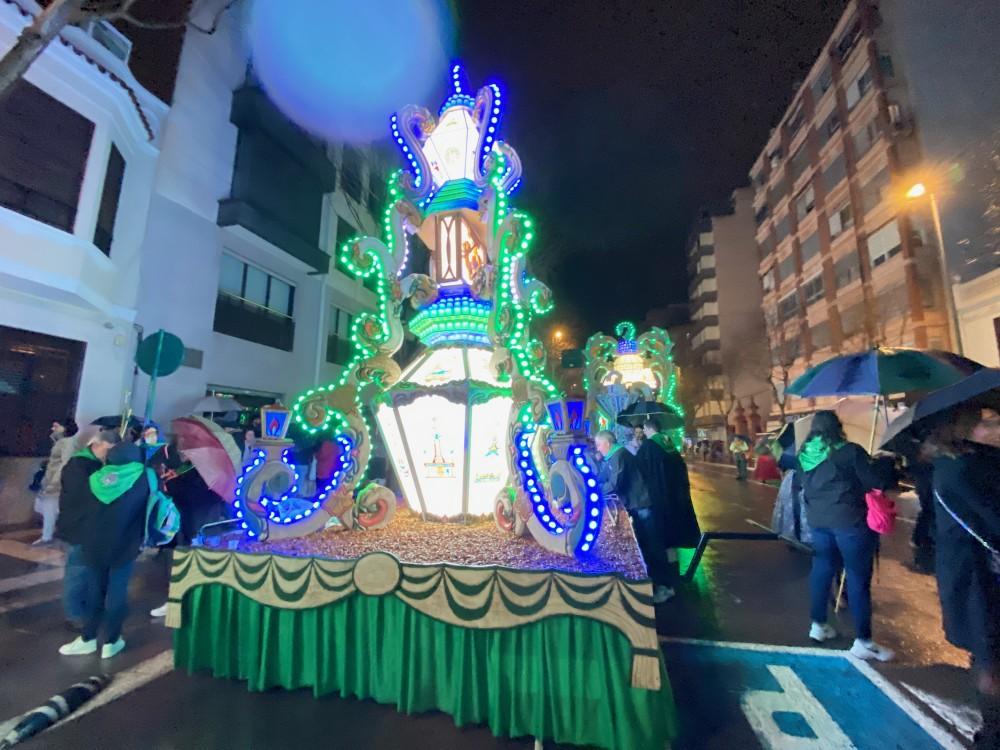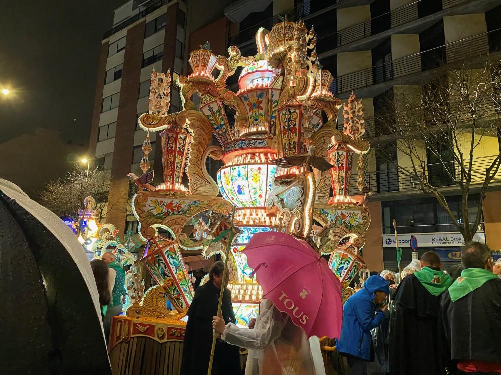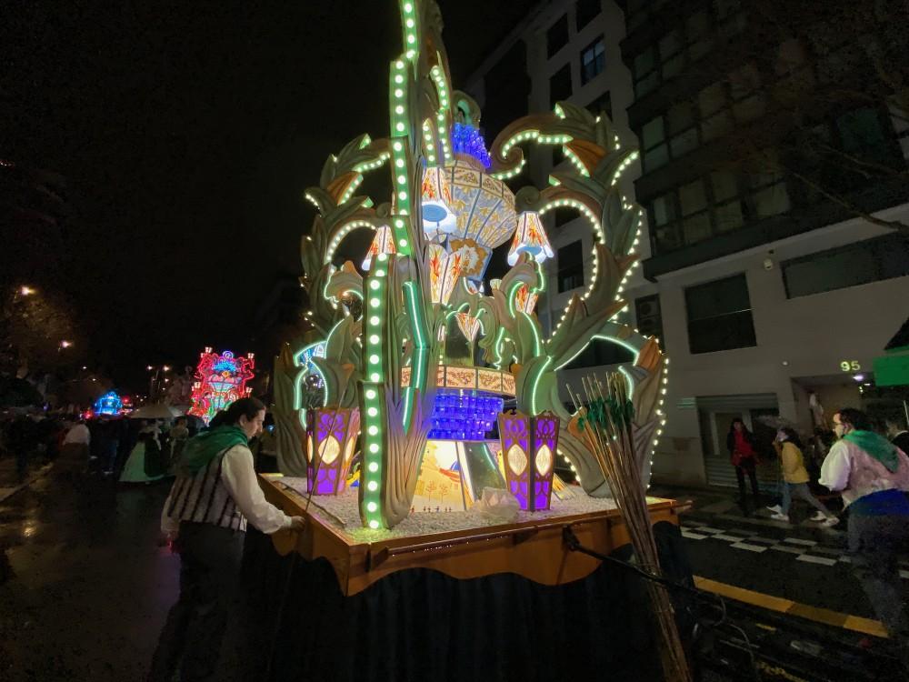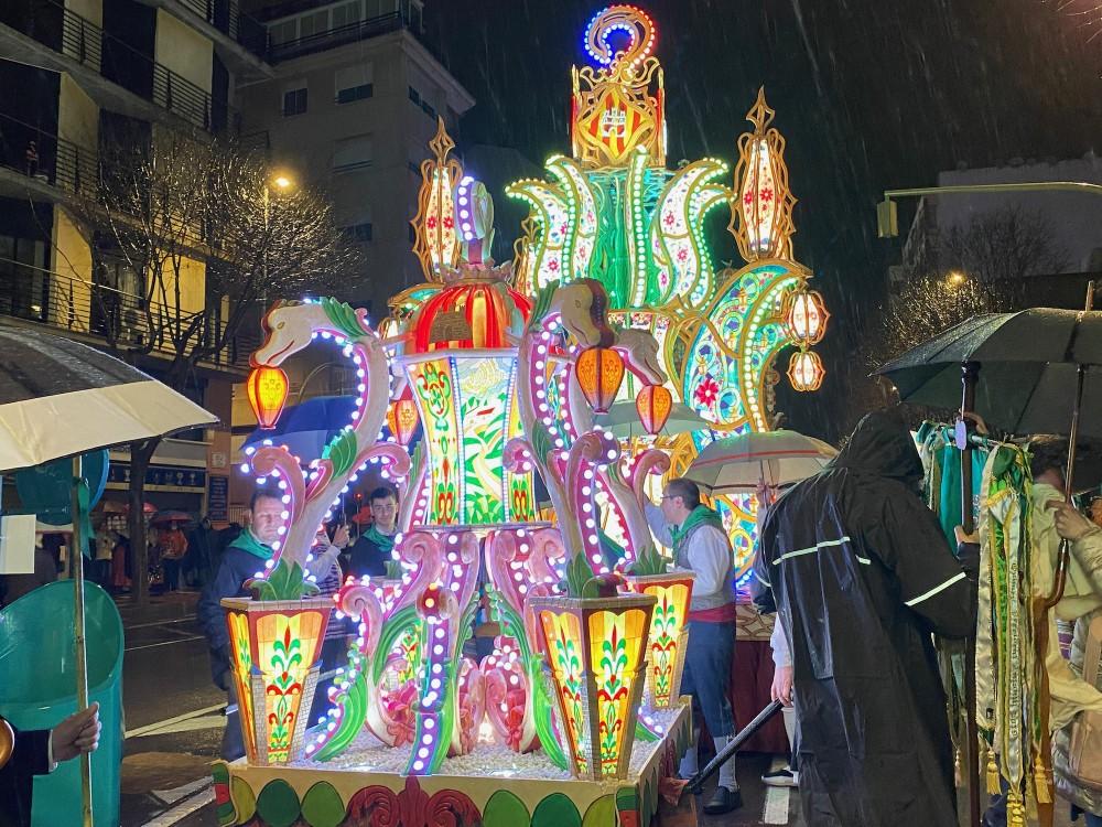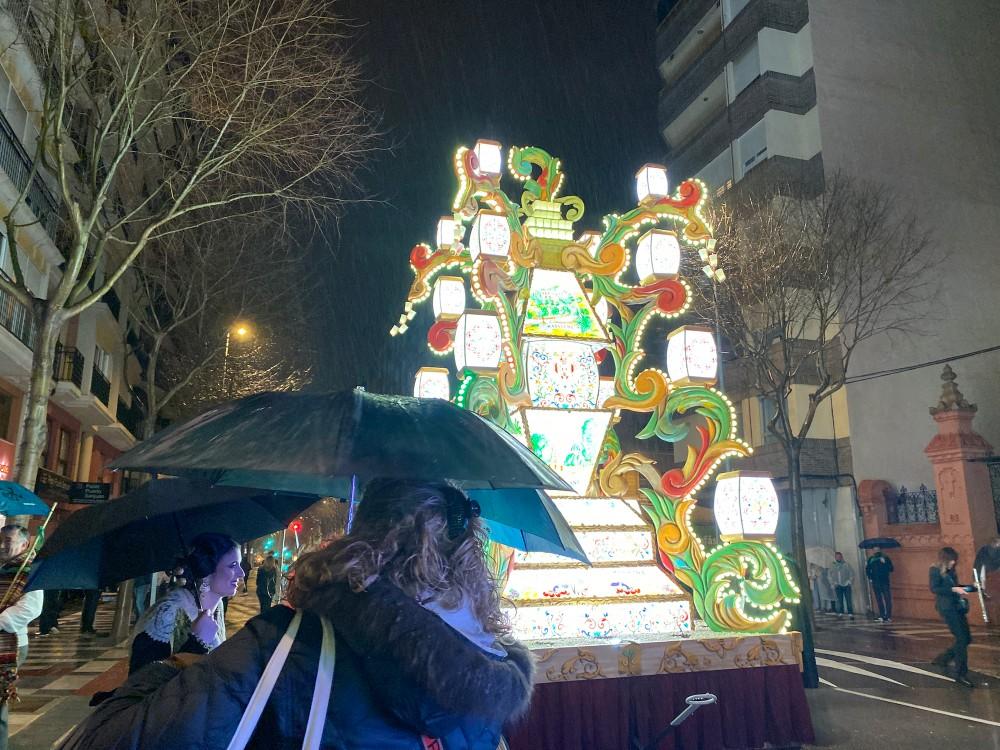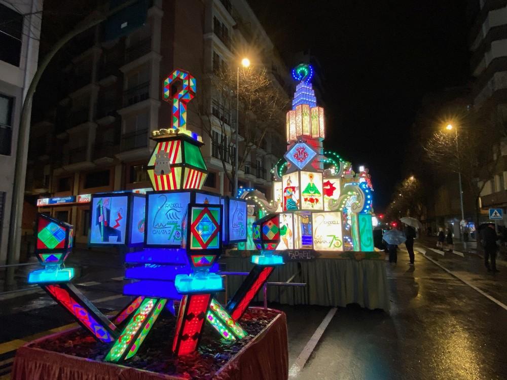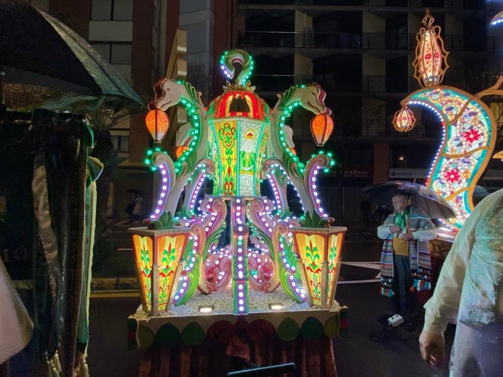 Pero la lluvia débil de por la tarde generó problemas, unas gaiatas no arrancaban, los grupos que tenían que suministrar la luz al monumento, fallaban. Y así los problemas de última hora se sucedían y faltaban manos para cumplir con la misiva de que fuera un desfile ligero, sin parones ni contratiempos.