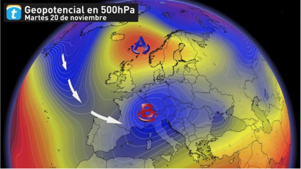 Por otra parte, desde el portal meteorológico Eltiempo.es, el potente anticiclón situado al norte de Europa permanecerá estancado en esa zona creando lo que se llama anticiclón de bloqueo. El anticiclón ejerce de “escudo” ante la llegada de borrascas que no tienen más opción que desviar su camino y en este caso lo harán hacia España.