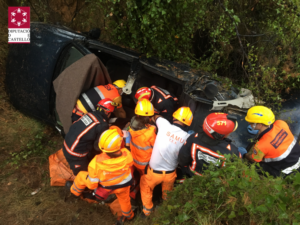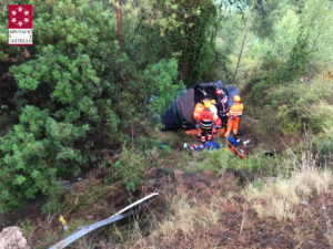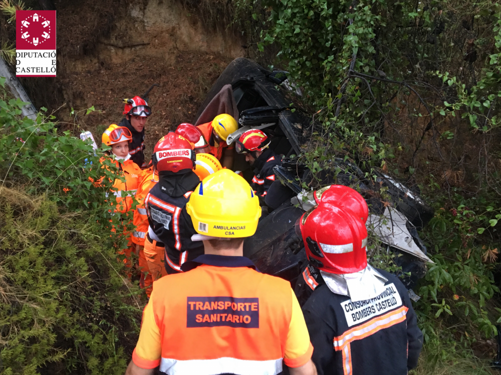 Sobre las 18.50h y en plena tormenta, se ha recibido aviso de un accidente de tráfico en la CV190 en localidad de L'Alcora. Se indica que un vehículo se ha salido de la vía y ha caído por el terraplén de un barranco con una mujer en su interior. El Consorcio de Bomberos de Castellón ha movilizado 1 dotación de bomberos voluntarios del parque d L'Alcalatén. A su llegada han procedido a la excarcelación de la persona atrapada. SAMU la ha estabilizado y posteriormente bomberos con la colaboración de efectivos sanitarios y Guardia Civil la han trasladado hasta la ambulancia.