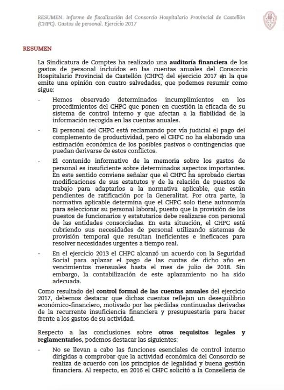 Por si todo esto no fuera ya bastante, ayer se hacía público el informe del Hospital Provincial de la Sindicatura de Cuentas relativo a 2017, en el que se reiteran muchos de los incumplimientos que ya se denunciaron en las auditorías de los dos años anteriores.