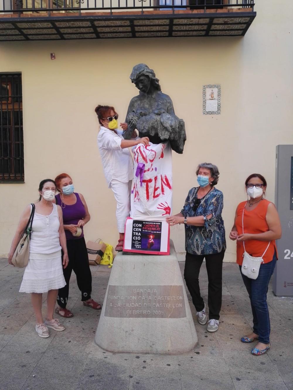Castellón se pronuncia contra la violencia machista. Las estatuas que representan a mujeres en la ciudad han servido de plataforma para mostrar la repulsa contra la lamentable proliferación de asesinatos de mujeres, tras el levantamiento del estado de excepción, con motivo de la pandemia.