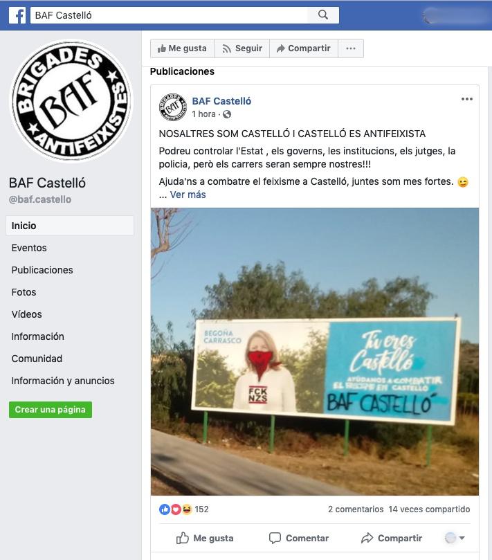 Las Brigadas Antifascistas de Castellón también se han hecho eco de este incidente en su cuenta de Facebook.