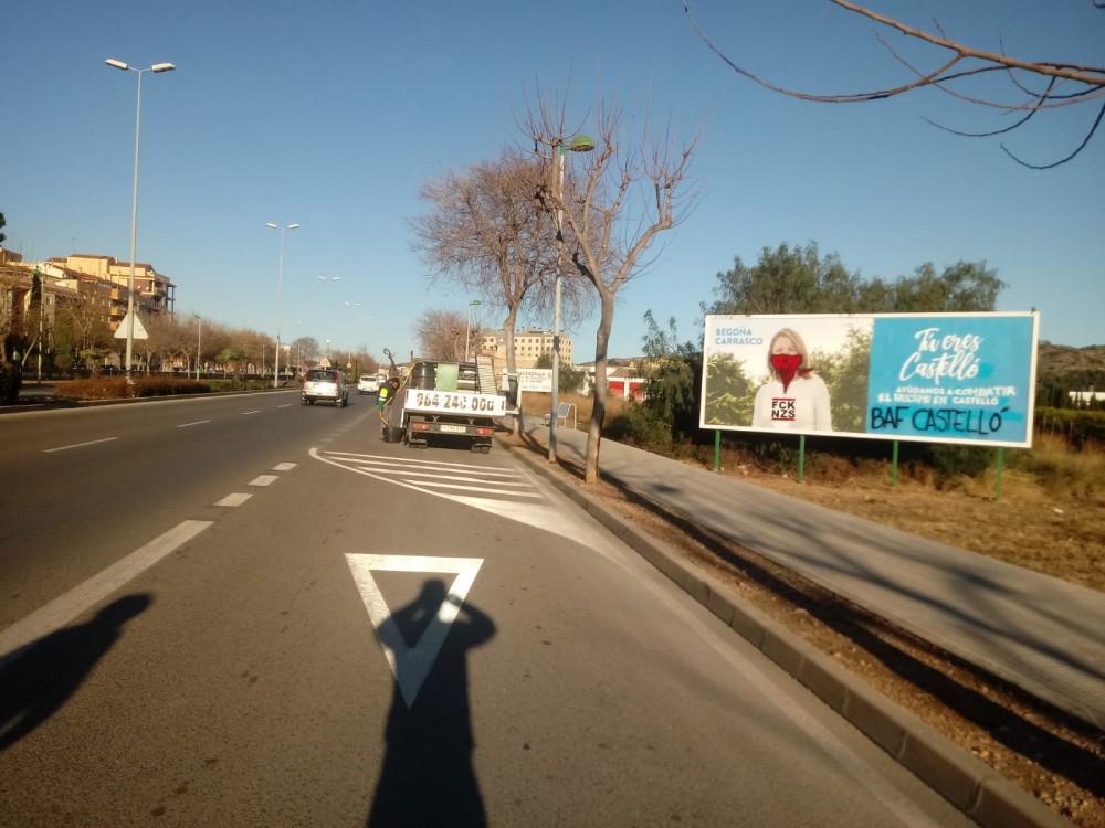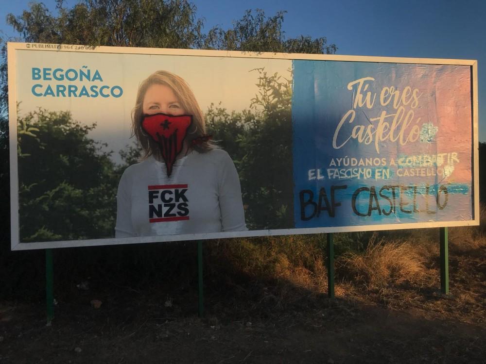 Las pancartas electorales de la candidata a la alcaldía de Castellón, Begoña Carrasco, amanecían esta mañana llena de pintadas y escritos que deformaban la imagen original. La portavoz del Grupo Municipal en el Ayuntamiento de Castellón ha interpretado este ataque como la forma de reaccionar de las Brigadas Antifascistas, BAF, que  “el mismo día que comienza el juicio a los golpistas del ‘procés’, sus acólitos en Castellón se movilizan atacando al PP”.