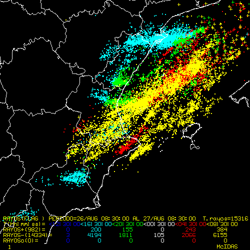 De otro lado, desde Aemet han informado que en las últimas 24 horas 2.619 rayos han impactado en tierra dentro del territorio de la Comunitat Valenciana, 1316 en Valencia, 863 en Castellón y 440 en Alicante.