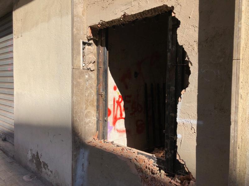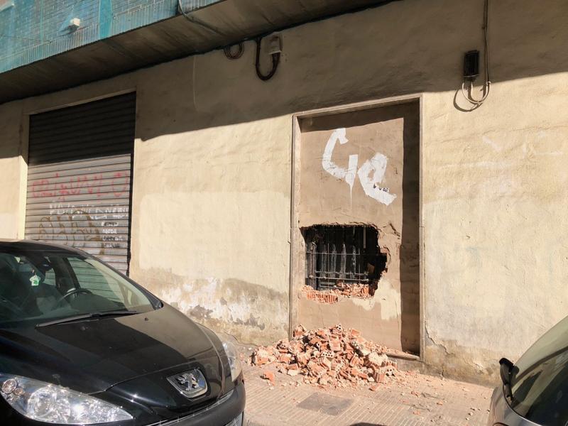 Las dos puertas paredadas han sido derribadas a golpe de martillo, y el acceso, en el interior del inmueble, está abierto y con 'usuarios'