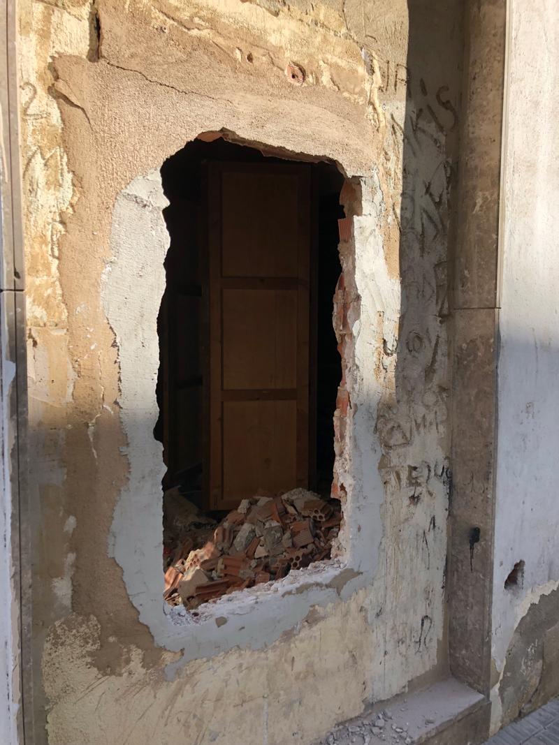 Según ha podido comprobar Castellón Información, se han practicado varios boquetes en los accesos. Uno de ellos, por donde resulta imposible acceder, porque lo que queda al descubierto es una especie de ventana enrejada. Pero no ha ocurrido igual con las puertas, donde parece que los ladrillos han sido abiertos a golpe de martillo.