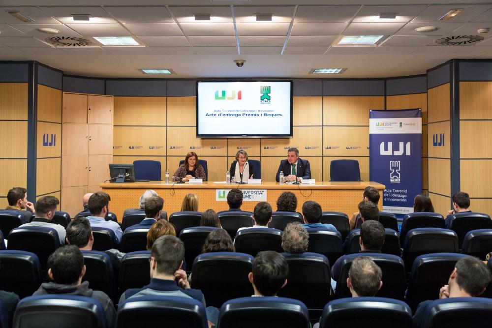 L'Aula Torrecid de Lideratge i Innovació de la Universitat Jaume I ha fet lliurament de set beques de màster, un premi al millor Treball de Fi de Màster de l'Escola Superior de Tecnologia i Ciències Experimentals (ESTCE), un premi al millor Treball de Fi de Grau de l'ESTCE i el premi del I Concurs de Disseny de Producte Torrecid. L'acte ha comptat amb la presència de la rectora de l'UJI, Eva Alcón; el responsable de selecció de Torrecid, Javier Gasch, i la directora de l'Aula Torrecid, Amelia Simó.
