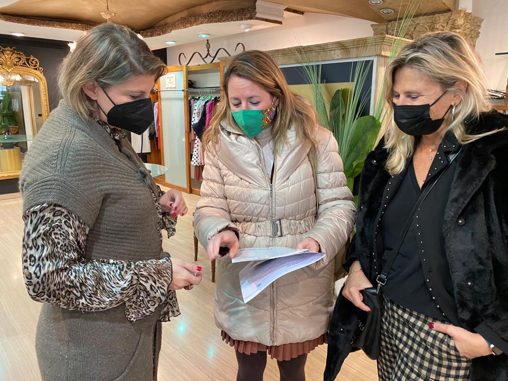 La portavoz del Partido Popular en el Ayuntamiento de Castellón, Begoña Carrasco, junto a la concejala del PP Susana Fabregat, ha iniciado hoy una ronda de visitas a los comerciantes del centro que se van a ver afectados por la reforma de la plaza de la Paz anunciada por la alcaldesa Amparo Marco.