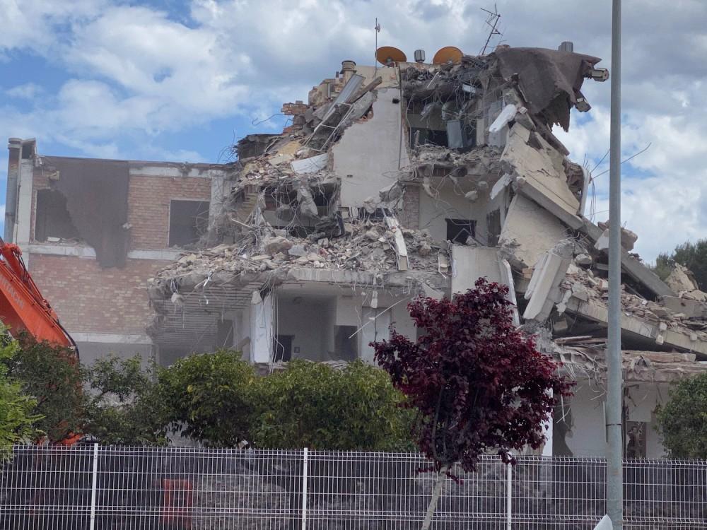 La part sud de l'immoble poc a poc reduïda a enderrocs és ja el conjunt de molts records a la memòria