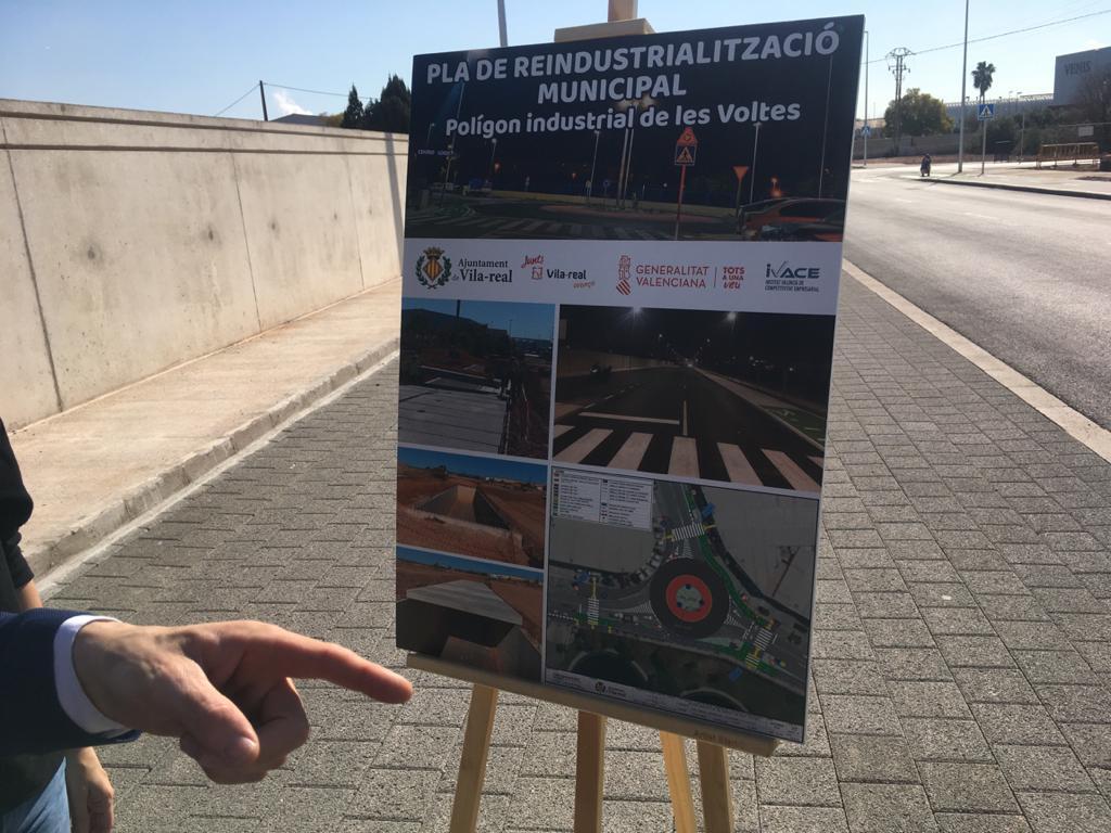 Laprimera fase de les obres de millora i modernització del polígon industrial del camí Les Voltes de Vila-real han arribat al seu fii donen pas a una nova fase que es sol·licitarà a la Generalitat i que forma part d’un paquet de deu projectes més. Cal recordar que l’actuació s’emmarca dins el Pla de Reindustrialització Locali ha sigut finançat amb ajudes de l’ l’Institut Valencià de Competitivitat Empresarial, IVACE, que ha finançat fins a cins projectes en zones industrials de la ciutat comMolí Nou, Carretera d’Onda, Travessa, Reg Noui aquest, amb més més de tres milions d’euros subvencionats des de 2017. El projecte de Les Voltes, que va ser adjudicat per 1.070.000 euros, a l’empresa castellonenca Gimeoconsinclou la creació de carrils per a bicicletes i vianants i la modernització i dotació d’infraestructures de serveis, a més de pantalles vegetals, enllumenat eficient i altres millores de sostenibilitat i eficiència. L’alcalde de la ciutat, José Benlloch,el regidor de Territori, Emilio Obiol,personal tècnic del departament i representants de l'adjudicatària han visitat la zona aquest matí i han presentat les millores i innovacions portades a terme.