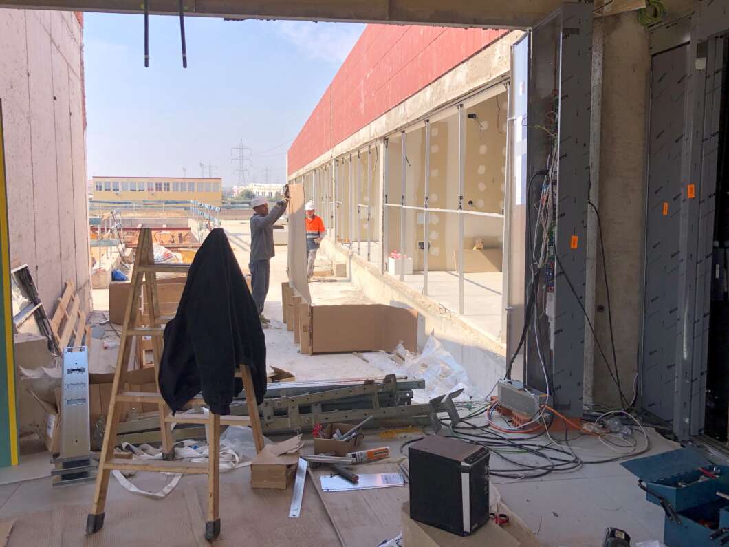 Els tècnics municipals validen un cronograma de treball marcat en aquests moments per les instal·lacions de subministraments, el muntatge de l'ascensor i l'enrajolat de corredors, entre altres, unes obres que es distribueixen en tot el perímetre. Diferents equips d'operaris es divideixen entre la planta baixa i el primer pis per a escometre la construcció per zones i complir el calendari. A més, altres treballadors duen a terme les escomeses sota el paviment dels carrers més pròxims per a connectar els subministraments.