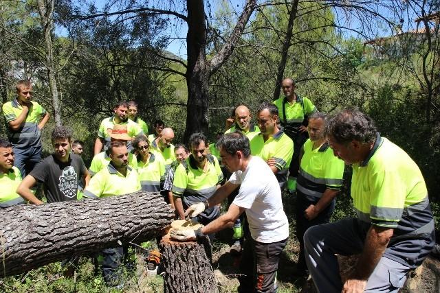 Se ha tratado de una jornada intensiva, la primera parte en el almacén, donde un técnico les ha impartido la teoría. Esa misma persona ha realizado después una demostración práctica de trabajos forestales en un pinar municipal de Tales.