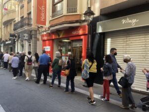 A primera hora s'han vist llargues cues de gent per a recollir els programes, que arribava de la porta del Casino fins a la Plaça de l'Ajuntament.