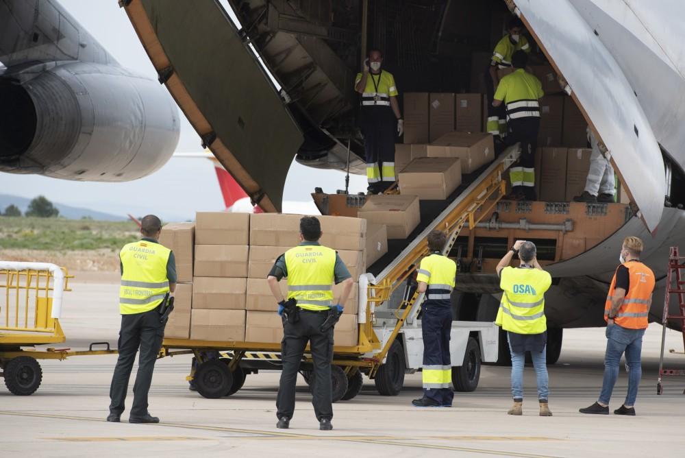 El avión, que ha aterrizado en el aeropuerto castellonense en torno a las 16.00 horas, ha sido fletado por la empresa castellonense Hilaturas Temprado, trae material para la Diputación Provincial, la Generalitat Valenciana y diversas instituciones públicas, así como para varias empresas. En el caso de la provincia de Castellón, la operación de compra coordinada por la Diputación consta de un total de 370.000 mascarillas para 131 municipios.