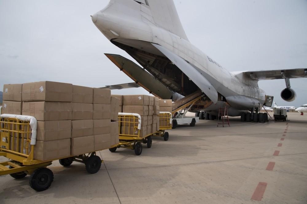 El aeropuerto de Castellón ha recibido esta tarde el avión procedente de China con las mascarillas adquiridas por los ayuntamientos de la provincia bajo la coordinación de la Diputación, que serán repartidas los próximos días a las entidades locales que solicitaron el material de protección sanitaria a la institución provincial.