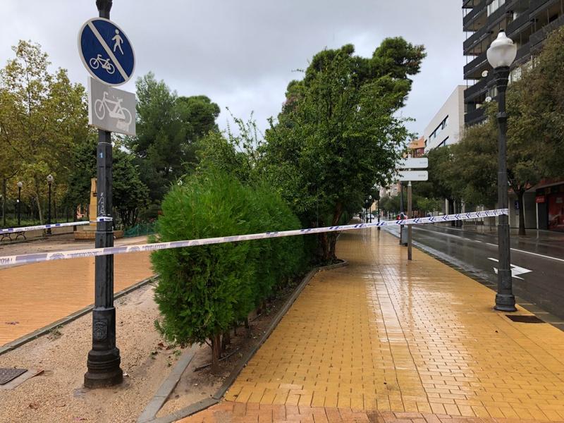 A lo largo de la mañana, la capital de la Plana presentaba un aspecto gris, debido a la situación por las lluvias, y 'prudente', con algunos comercios cerrados, y personas que se desplazaban con el paraguas mirando al cielo. Las labores de limpieza se han sucedido en diferentes puntos de la ciudad. en el Parque Ribalta se realizaban labores de limpieza de las hojas, para evitar que colapsaran los desagües, y se mantenía el perímetro de seguridad.
