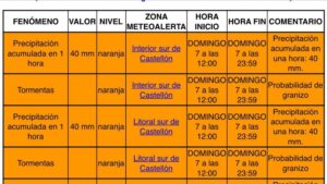 Ya desde esta mañana el Aemet alertaba de la posibilidad de tormentas y lluvia en todo el sur de la provincia. así como posibilidad de tormentas fuertes con granizo y acumulados de 40mm/h que puntualmente pueden ser superiores.