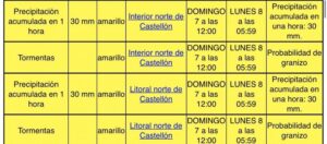 Por ello se establecía nivel naranja de preemergencia en el sur de la provincia así como preemergencia de nivel amarill0 en el norte de la región.