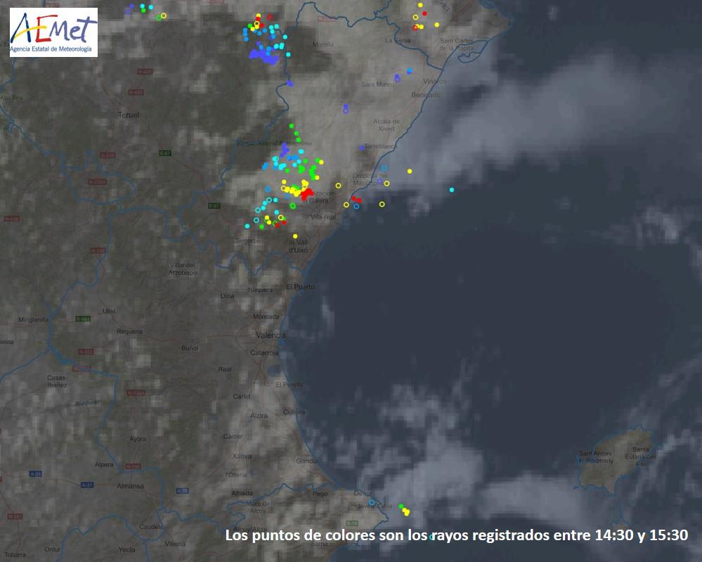 Aemet Comunitat Valenciana advertía de mucha actividad convectiva en la provincia de Castellón con una zona muy activa en la Serra d'Espadà.