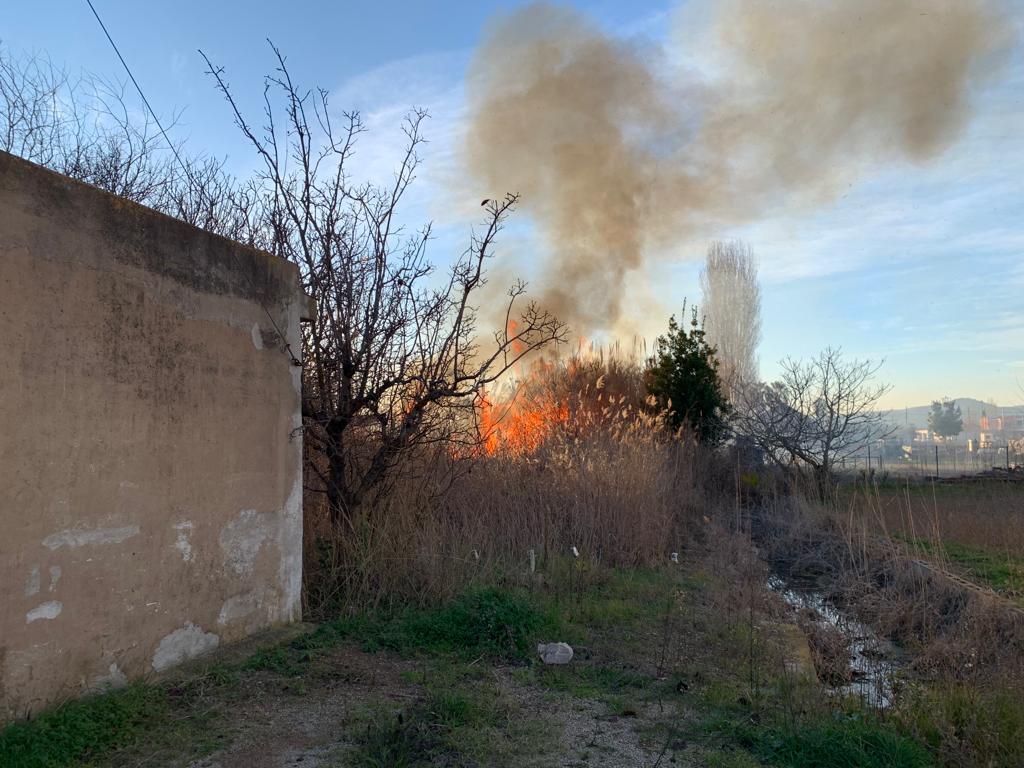 Los bomberos del área de Seguridad de Castelló intervienen en la extinción de un incendio en la Marjalería. Según han confirmado los vecinos a Castellón Información, afectaría a una zona de cañas y maleza con viviendas, alguna de ellas de madera, situada junto al Camí de Entrilles.