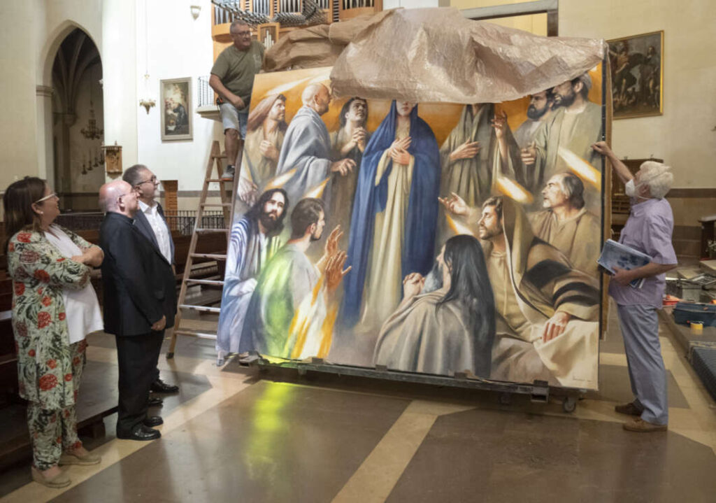 Este jueves se ha procedido a la colocación de los dos últimos cuadros del retablo central de la Concatedral de Santa María de Castellón, que se compone de nueve obras realizadas por el pintor Traver Calzada. Se trata de una colaboración que desde 2014 ha supuesto una inversión global de 353.925 euros por parte de la institución provincial. En el actual mandato, bajo el impulso de la diputada de Cultura, Ruth Sanz, se ha finalizado el proceso con la colocación de los cuatro últimos cuadros, de los que tres han tenido un coste de 117.975 euros y uno ha sido donado por el propio artista.