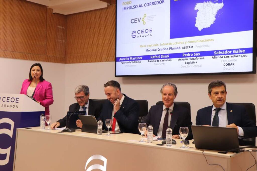 En la primera, moderada por Cristina Plumed, Presidenta de la Asociación de Empresarios del Camp de Morvedre (Asecam); Salvador Galve, Decano del Colegio de Ingenieros Industriales de Aragón y La Rioja (Coiiar) y Presidente de la Alianza Corredores.eu, ha dejado patente que el Corredor "es estratégico para las conexiones de la Península Ibérica con Europa en la red TEN-T", abogando por "la necesidad de planificar y trabajar de inmediato como país para llevar a cabo la ejecución a medio plazo de un nuevo trazado acorde con las directrices de la UE y en especial el tramo Sagunto-Teruel- Zaragoza", como demuestra el que "a pesar de que el trazado sigue siendo el mismo, la inversiones de los últimos años han multiplicado por diez el volumen de frecuencias semanales, unido a la necesidad de descarbonizar el transporte de mercancías. Zaragoza debe convertirse en el puerto seco de Valencia".