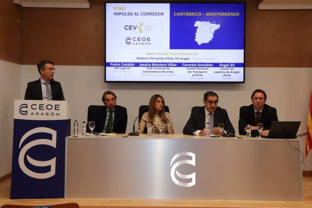 Reivindicar el Corredor ferroviario Cantábrico-Mediterráneo y que su ejecución haga realidad todo su potencial logístico para las empresas de las comunidades autónomas que recorre, el conjunto de España y, especialmente Aragón y la Comunitat Valenciana. Con este objetivo se ha celebrado hoy en Zaragoza el Foro Impulso al Corredor Cantábrico-Mediterráneo, organizado por CEOE Aragón y la Confederación Empresarial de la Comunitat Valenciana (CEV), que ha contado con el respaldo de ambos gobierno autonómicos y ha congregado a buen número de empresas y expertos del transporte y la logística en la sede de la confederación empresarial aragonesa.