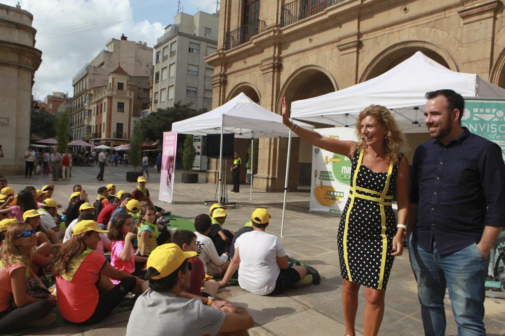La alcaldesa de Castellón, Amparo Marco, también se ha acercado hasta la plaza Mayor para poder saludar al alumnado participante y animarles a seguir protagonizando el cambio en Castellón hacia una ciudad más amable y acogedora.
