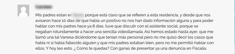 Según estos mensajes, muchas de estas residencias no proporcionan información sobre los residentes. Las hay cuyos teléfonos comunican todo el tiempo. Otra, incluso, falsean la información y niegan la intervención, y finalmente, se dan muchas situaciones en las que los familiares piden poder comunicarse con los suyos, pero después de días tampoco lo consiguen.