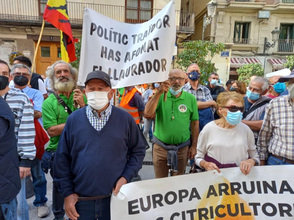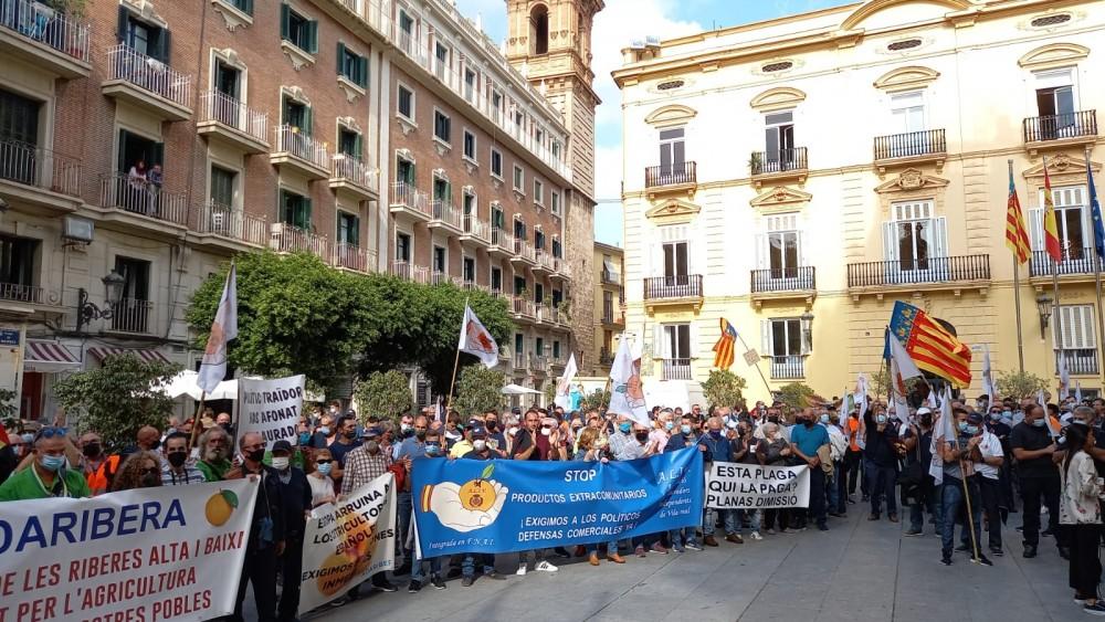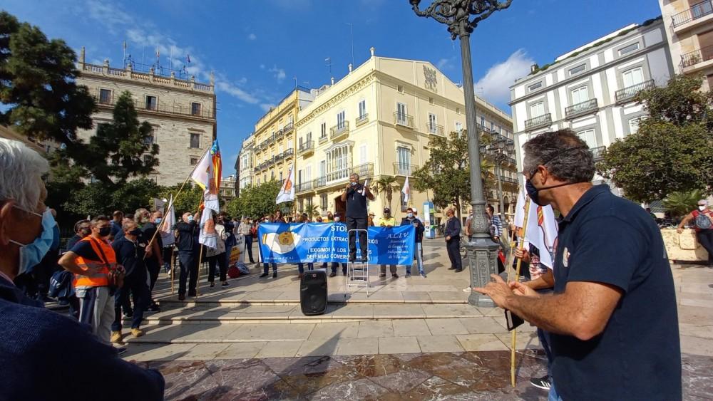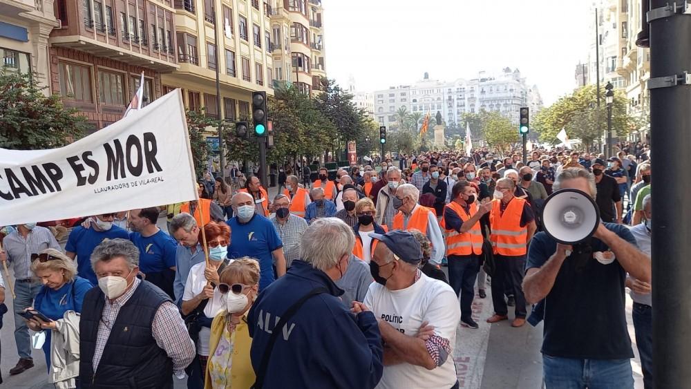 Unos 1000 agricultores siguieron la convocatoria de las asociaciones agrarias independientes de la Comunidad valenciana (AVIDA de Camp de Turia, ADARIBERA de Algemesí, AAN de Nules y ALIV de Vila-real). Al final del recorrido se han dirigido al Palau de la Generalidad, para entregar su manifiesto y explicarlo a la Conselleria de Agricultura sin éxito. Las reivindicaciones han sido entregadas y explicadas al Vicedirector de Agricultura de la Conselleria, al que se le ha instado a que a la mayor brevedad posible seamos recibido por la Consellera, la cual ha rehusado recibirnos en cuatro ocasiones en las que se le ha solicitado por carta.