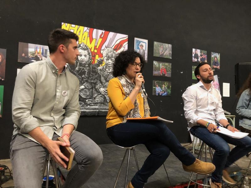 Los representantes más jóvenes de los partidos políticos que presentan candidatura al Ayuntamiento de Castellón: Sergio Toldo por el PP, Jorge Ribes por el PSOE, Aida Artola por Compromís, Esteban Ventura por Ciudadanos y Teresa Bellido por Podem, han debatido esta tarde sobre el Castellón que quieren y que promueven, en un acto convocado por el Consell de la Juventut en la Bohemia.
