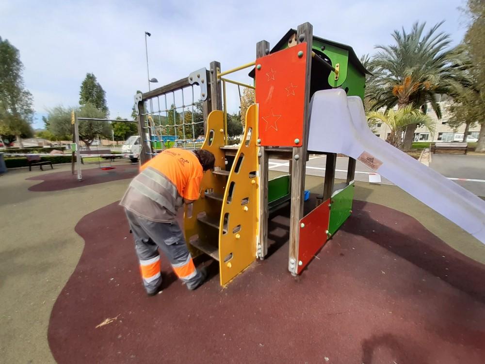 El Ayuntamiento de Benicàssim, a través del Área de Medio Ambiente, tiene activado un plan especial de pintado de las áreas de juegos infantiles municipales. La UTE Saneamiento Urbano de Benicàssim es la encargada de realizar los trabajos que se han planificado por grupos de la siguiente manera: 1 la zona del casco urbano, 2 la zona Gran Avenida y villas y el grupo 3 engloba las urbanizaciones. “El municipio de Benicàssim cuenta con 30 áreas de juegos infantiles y tras estudiar de forma previa las necesidades y prioridades, la planificación realizada contempla actuaciones en los espacios más deteriorados por el uso intensivo”, ha explicado la concejala de Medio Ambiente, Elena Llobell. Hay previstas un total de 22 actuaciones cuya ejecución se prolongará las próximas semanas, hasta previsiblemente finales del mes de noviembre.