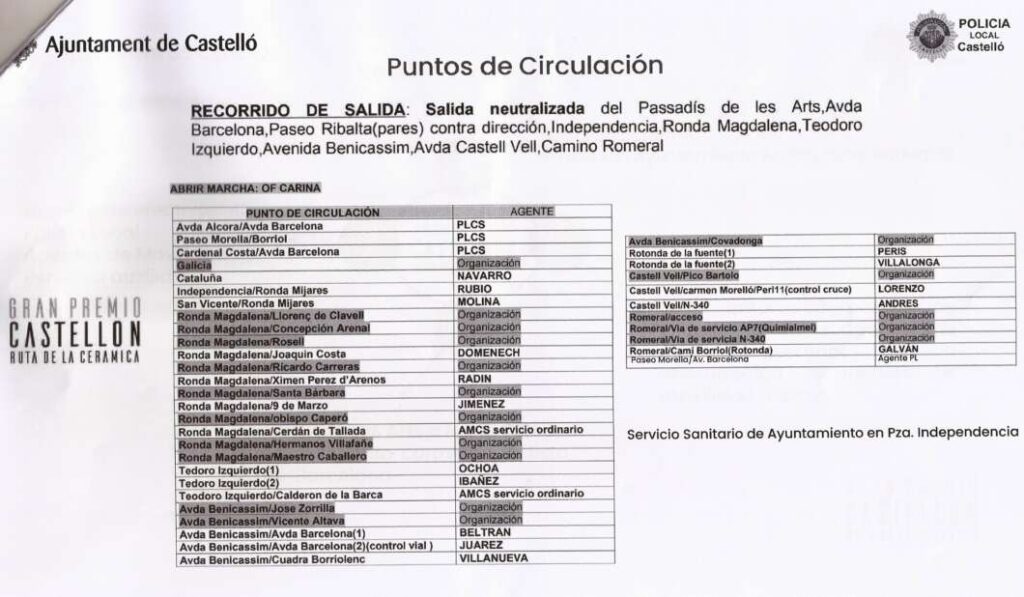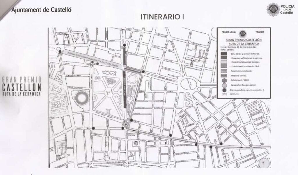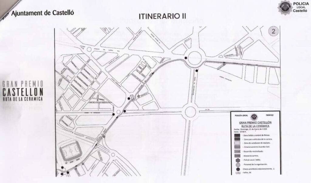 El estacionamiento de la caravana ciclista estará situado en la Avenida Barcelona. Se realizará una ‘salida neutralizada’ de 3 kilómetros con el siguiente itinerario: Paseo Central del Parque Ribalta – Avda Barcelona - Paseo Ribalta (pares) – Plaza de la Independencia – Ronda Magdalena – Teodoro Izquierdo, Avenida Benicàssim – Avda Castell Vell y Camino Romeral donde ya se sale del núcleo urbano en dirección a Borriol.
