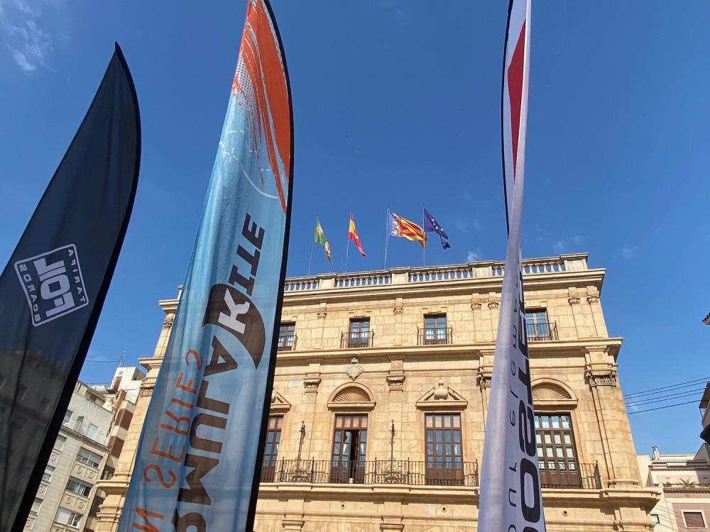 Esta mañana se ha presentado en la plaza Mayor de Castelló la segunda prueba del Campeonato nacional Fórmula Kite Spain Series, un circuito que va a reunir a los mejores regatistas del mundo en esta modalidad de vela, en la que los regatistas vuelan literalmente sobre el mar sobre una tabla, impulsados por el viento sobre una cometa.