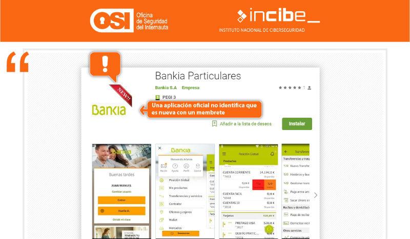 El Instituto Nacional de Ciberseguridad (Incibe), a través de la Oficina de Seguridad del Internauta (OSI), ha emitido una alerta de seguridad calificada como alta, para avisar a los usuarios sobre la presencia de una aplicación informática falsa, que intenta suplantar a la app oficial de Bankia.