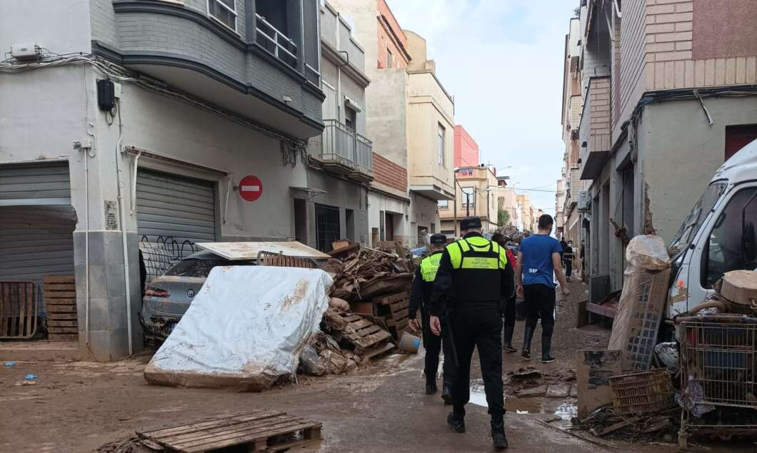 Ocho policías portuarios de Castellón se desplazan cada día, desde el pasado sábado, a la localidad valenciana de Benetússer, fuera de horas de trabajo, para poder atender las necesidades de un municipio que lo ha perdido todo.