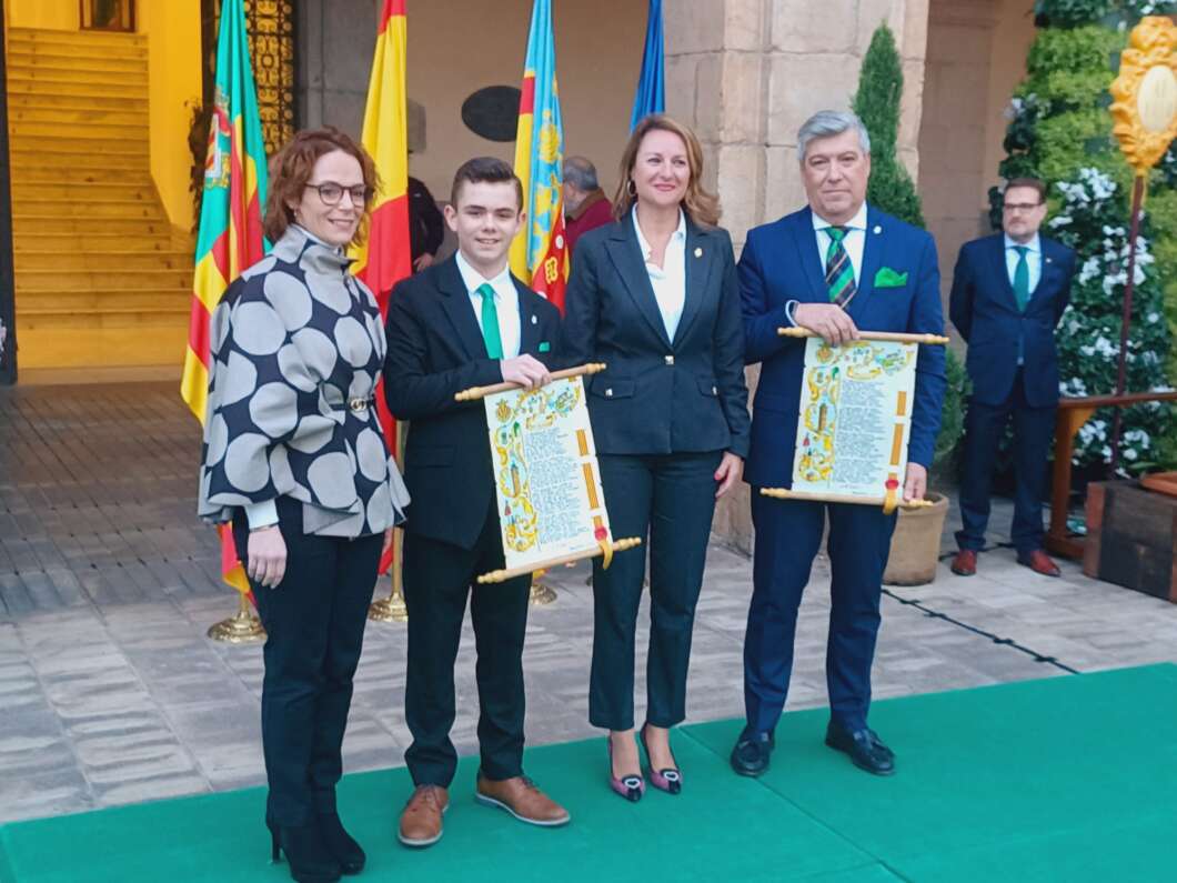 La alcaldesa ha hecho entrega de un ejemplar del Pregó tanto al Pregoner como al Pregoner Infantil, con los pergaminos que recogen los versos de Bernat Artola y Vicent Pau Serra, después lo cuál, ambos han cantado sus respectivos pregones.