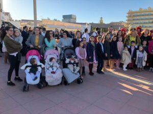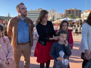 Protegidos por una barrera de seguridad, los peques, acompañados por sus padres, se ponían de acuerdo para llamar a sus Reyes… y los Magos de Oriente pedían la colaboración de ‘sus ayudantes’ que portaban un carro lleno de dulces, para que sus majestades los repartieran tirándolos al aire.