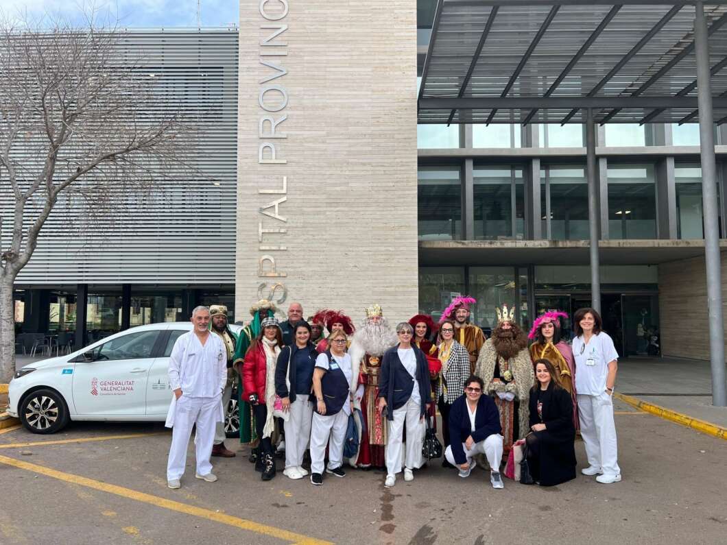 Sus Majestades los Reyes Magos de Oriente, junto con los miembros de la Junta de Fiestas, organizadores de la Cabalgata de Reyes y la concejala de Fiestas en el Ayuntamiento de Castellón, Noelia Selma han hecho su parada en sendos hospitales.