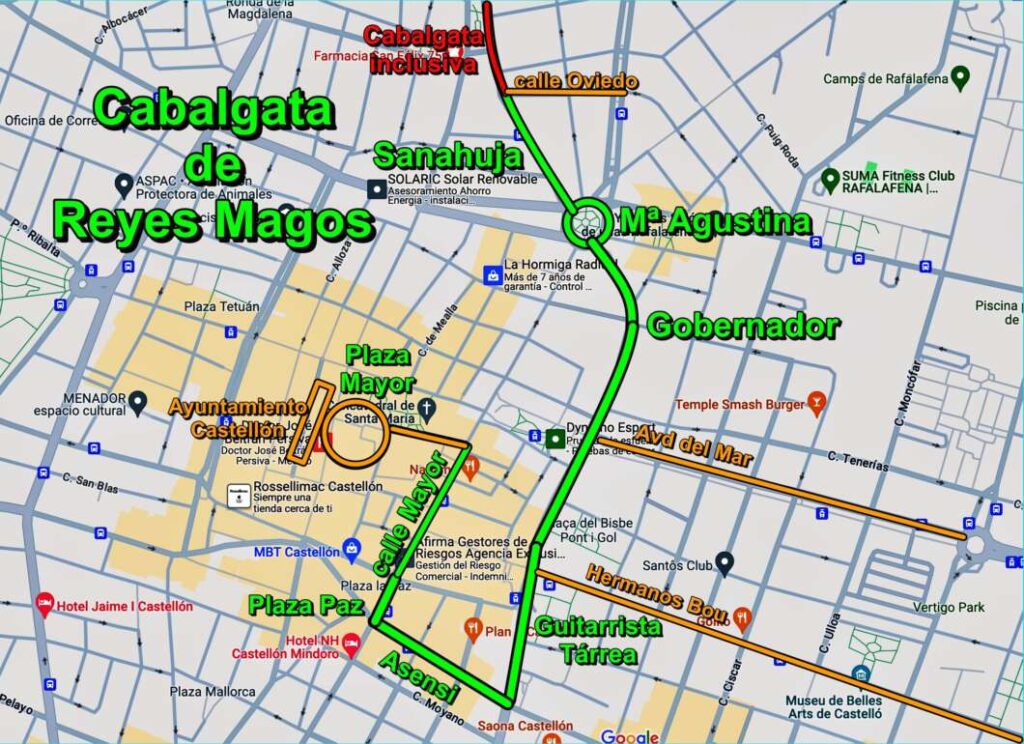 La Cabalgata de los Reyes Magos saldrá de la calle Sanhauja, en Castellón a las 19:00 h. El primer tramo hasta la calle Oviedo, será 'Inclusivo', esto es, no tendrá efectos sonoros, visuales ni lanzamiento de caramelos. Esto es así para que esta fiesta sera también mucho má atractiva para los niños con espectro autista.