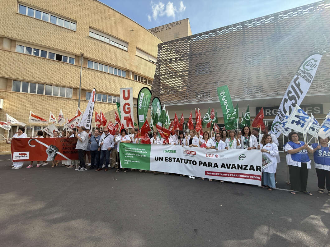 Miles de trabajadores del Sistema Nacional de Salud (SNS) se han concentrado este martes en centros sanitarios de todo el país, incluida la puerta del Hospital General Universitario de Castellón, para exigir al Ministerio de Sanidad que no cierre la negociación de la Ley del Estatuto Marco y acuerde un “Estatuto para avanzar” que contemple todas las necesidades del personal de la sanidad pública.