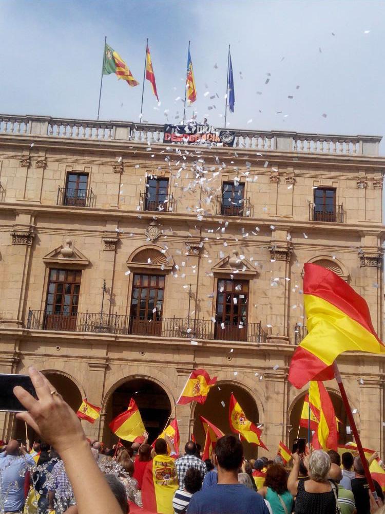 La Declaración Institucional del Grupo Municipal Popular de apoyo a las fuerzas y cuerpos de Seguridad del Estado. La iniciativa ha sido vetada por Compromís y CseM que, según afirma el PP: “Se han negado a condenar los ataques a la Policía Nacional y a la Guardia Civil en el contexto del desafía independentista de Cataluña, y tampoco han querido mostrarles su apoyo en el legítimo derecho de sus funciones”.
