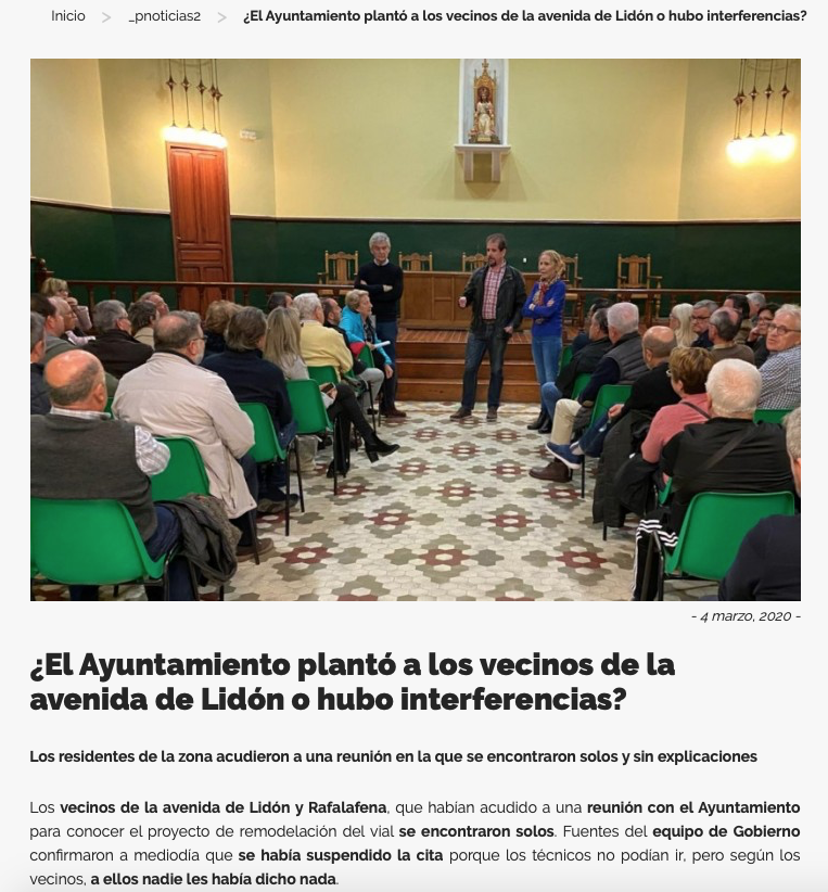 El PP afirma que el Ayuntamiento toma el pelo a los vecinos de Lidón y el tripartito guarda silencio