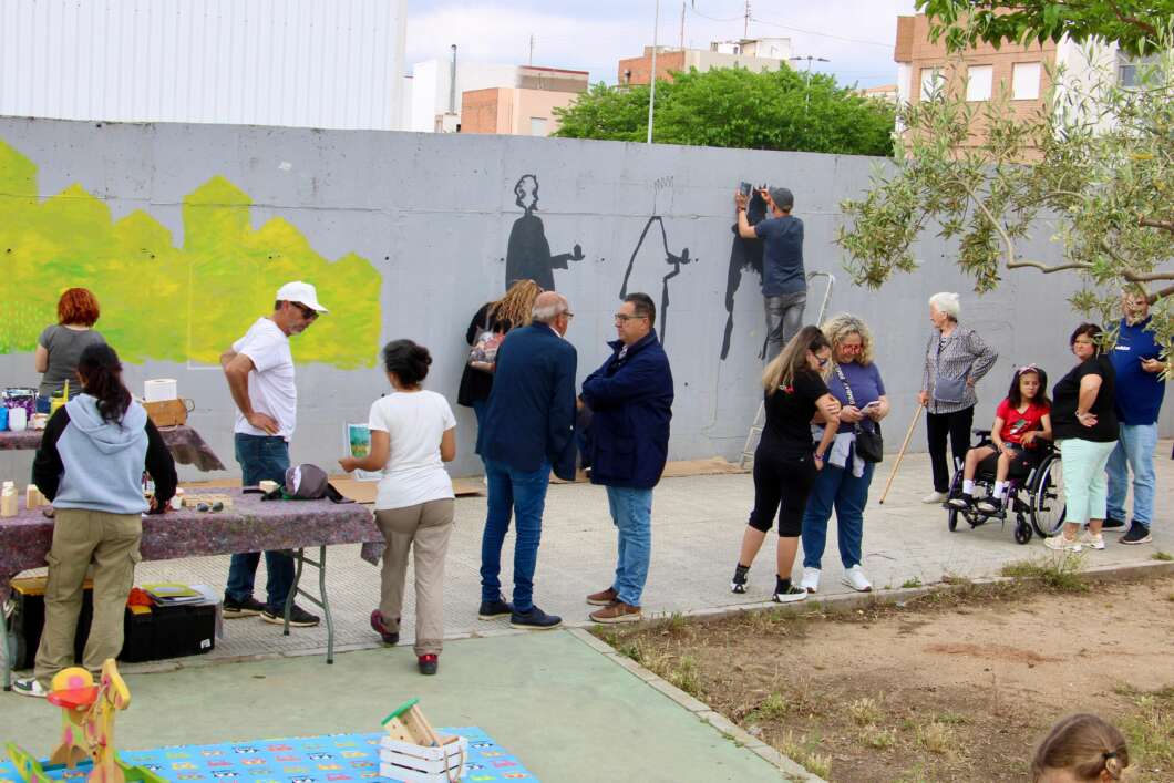En la plaza de La Era, en el distrito Oeste, los vecinos comienzan a pintar un mural colectivo con el apoyo del concejal Paco Cabañero, que destaca esta acción como un ejemplo de participación ciudadana y orgullo vecinal