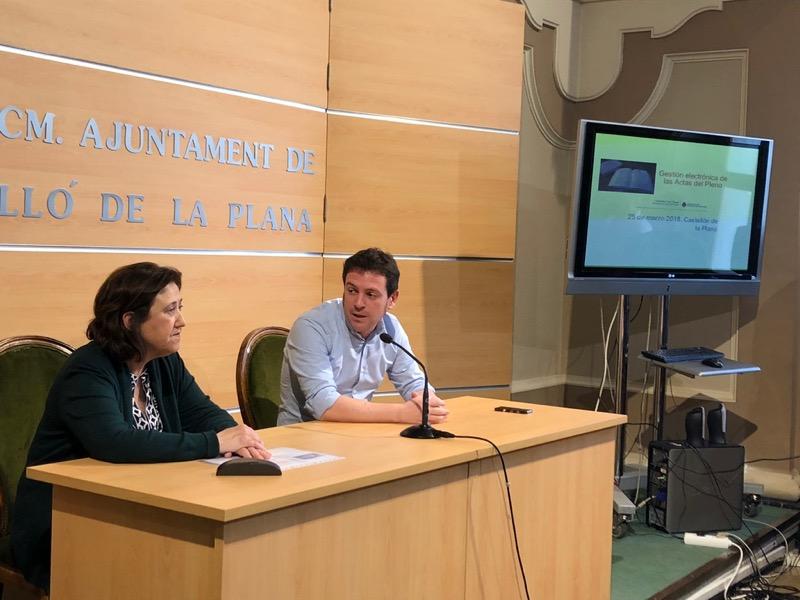 El concejal de Modernización del Ayuntamiento de Castellón, Ignasi Garcia, y la secretaria del Ayuntamiento de Castellón, han presentado esta mañana una nueva herramienta informática, que podrá revolucionar el seguimiento de los plenos, el sistema de trabajo de la administración y hasta la documentación de los medios de comunicación.