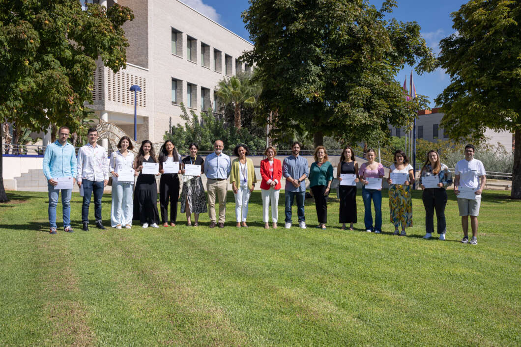 La rectora de la Universitat Jaume I, Eva Alcón; el representant del patronat de la Fundació Balaguer-Gonel Hermanos, Ernesto Tarragón Cros; la vicerectora d'Estudiantat i Vida Saludable, Mamen Pastor, i la directora de l'Escola de Doctorat, Mercé Correa, han fet lliurament de 18 beques per a cursar a l'UJI estudis de postgrau i cinc ajudes per a la mobilitat internacional de l'estudiantat de doctorat, corresponents al curs acadèmic 2022-2023.