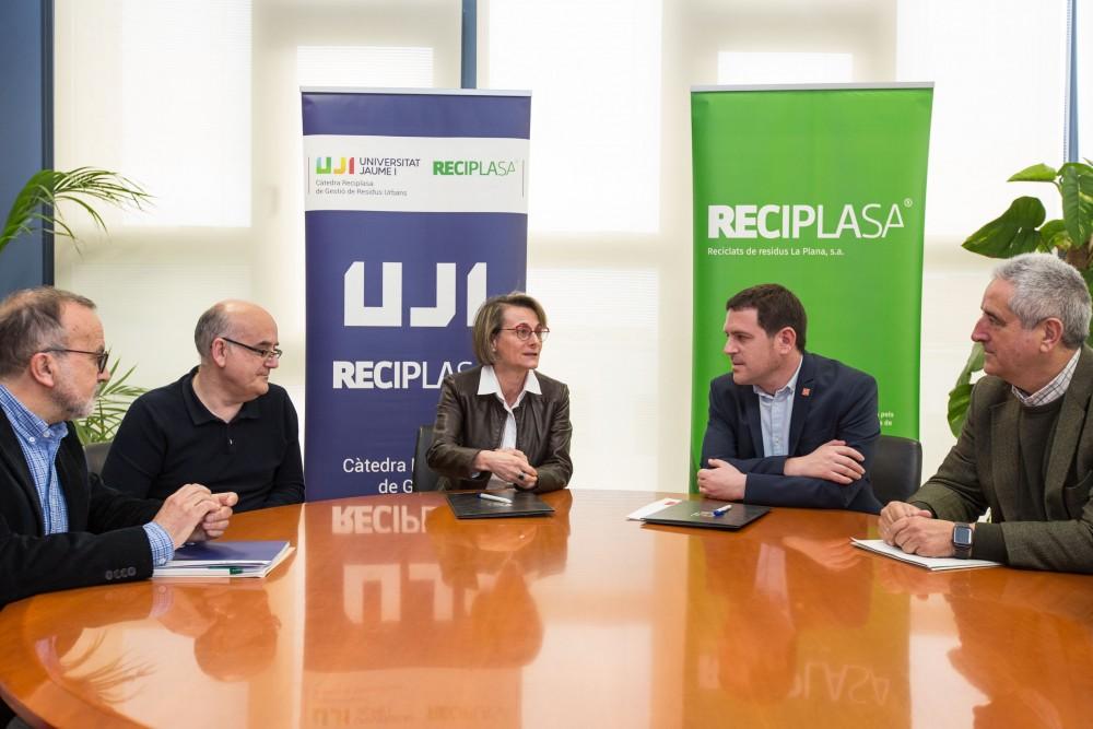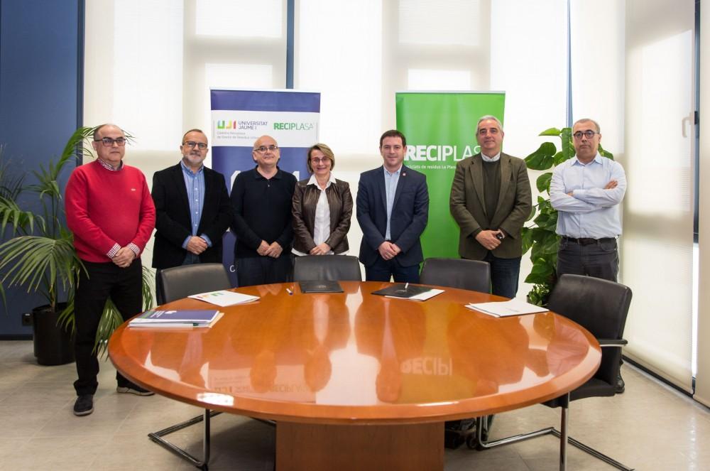 La rectora de la Universitat Jaume I, Eva Alcón, i el president de Reciplasa, Ignasi Garcia, han signat dimecres 6 de març de 2019 la renovació del conveni de la Càtedra Reciplasa de Gestió de Residus Urbans de la universitat pública de Castelló, que continuarà dirigida pel catedràtic de Química Analítica i secretari de l'Institut Universitari de Plaguicides i Aigües, Félix Hernández.